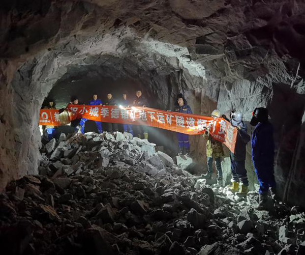 2020年12月25日,在吉林天池鉬業(yè)有限公司的盛邀與主持下,吉林省國資委、長春黃金設(shè)計院、陜建有色、舒蘭市安監(jiān)局和公安局、兗州中材建設(shè)有限公司舒蘭分公司等單位領(lǐng)導(dǎo)參加了小城季德鉬礦地下運(yùn)礦隧道順利貫通慶典,為慶祝2021年元旦送上了一份厚禮和祝福。  小城季德鉬礦地下運(yùn)礦隧道貫通儀式 2020年12月22日凌晨1點(diǎn)28分,伴隨著隧道內(nèi)最后一聲巨響,吉林天池鉬業(yè)有限公司小城季德鉬礦運(yùn)礦隧道安全順利貫通。 2020年4月17日,隧道進(jìn)口施工隊(duì)正式進(jìn)入施工現(xiàn)場。在經(jīng)歷了十余天的場平,基建,架設(shè)高壓線等措施后,生活區(qū)正常運(yùn)營。在5月8日隧道口明洞施工前期準(zhǔn)備時,舒蘭市成為高風(fēng)險疫情防控區(qū),嚴(yán)格控制人員出入。一直到6月下旬,隧道洞口才正式施工。 洞內(nèi)施工是在無巖土地質(zhì)資料,無確定施工圖紙,無地下水文資料的情況下進(jìn)行施工的。專業(yè)技術(shù)人員只能依靠邊掘進(jìn)邊觀察地質(zhì)情況進(jìn)行施工布置,給施工增加了不小難度。由于技術(shù)人員的技術(shù)過硬,才使得在掘進(jìn)過程中出現(xiàn)的頂板砂巖冒頂現(xiàn)象迅速得到控制,并在安全的情況下順利的通過了砂巖破碎區(qū)和Ⅲ.Ⅳ級圍巖區(qū),直至安全順利貫通。  此次隧道順利貫通是在兗州中材建設(shè)有限公司領(lǐng)導(dǎo)的關(guān)心與幫助下,尤其在閆永平副總工每月來隧道現(xiàn)場的技術(shù)指導(dǎo)下,在舒蘭分公司全體工作人員的共同努力下,也在設(shè)計院及業(yè)主按地質(zhì)結(jié)構(gòu)變化而隨時變更施工方案的配合下,完全達(dá)到了隧道設(shè)計參數(shù)要求。