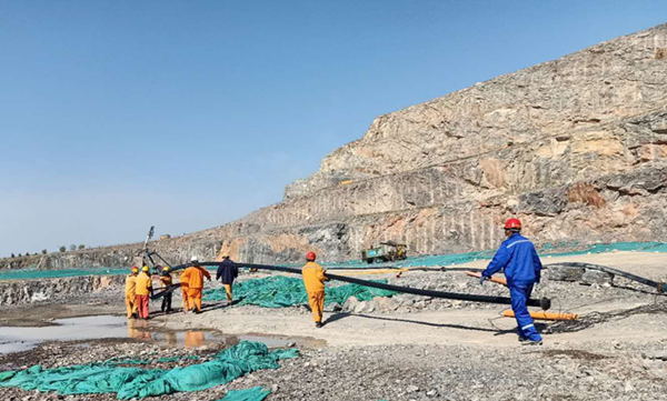 在嚴(yán)峻的環(huán)保形勢(shì)下,為了更好的控制灰塵對(duì)大氣環(huán)境的污染,棗莊申豐水泥礦山在各個(gè)采礦平臺(tái)鋪設(shè)了噴射系統(tǒng),對(duì)正在進(jìn)行挖裝的作業(yè)區(qū)都配置了降塵水炮。因每組水炮都有一定的噴射范圍,現(xiàn)場(chǎng)管理人員根據(jù)現(xiàn)場(chǎng)礦石開(kāi)采及裝運(yùn)情況,經(jīng)常需要對(duì)噴射裝置及管路進(jìn)行挪移。