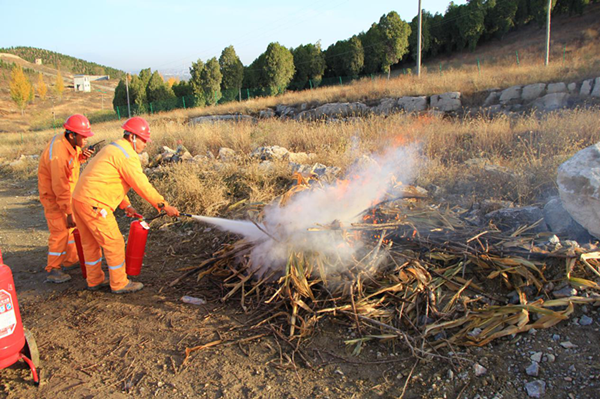 此次火災(zāi)演練的主要內(nèi)容是模擬礦區(qū)發(fā)生火災(zāi)后,員工熟悉消防器材的使用及如何撲滅初起火災(zāi)。演練現(xiàn)場,參加演練的人員接到演練開始的通知后,迅速而有序的展開火災(zāi)救援行動(dòng),滅火過程中火勢越來越大,調(diào)集灑水車最終將火勢撲滅。