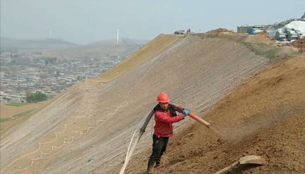 2018年12月20日,由兗州中材平陰分公司承擔施工任務的平陰山水道路及邊坡治理工程在分公司的精心組織下順利開工了。所治理的排渣場工程處于平陰山水礦區(qū)西側,由于基建期修建運礦道路,爆破后及后期排渣在原山坡地形上形成高斷面、坡度較大的地形,存在滑坡的安全隱患,加之一條縣道從山坡下穿過,嚴重影響平陰山水礦山形象建設,因此甲方下定決心進行治理。 兗州中材平陰分公司接收此項施工任務后,對該項工程非常重視,項目經理劉占中組織精干技術力量及設備在取得第一手詳細測量資料的基礎上,多次召開分公司會議討論施工方案和方法,并與業(yè)主及設計單位多次溝通,敲定最終施工方案。 工程開工以后,分公司組織兩臺卡特336挖機、破碎錘按照施工設計方案對排渣場進行分臺階治理。分臺階治理過程中,為防止坡面上的大塊及其他雜物滾進邊坡下方的農田,采用鋼絲繩捆綁,用挖掘機拖拽就地挖深坑掩埋的辦法進行處理,最大程度的減少了對下方農田的干擾和破壞。經過四十天的緊張施工,邊坡分臺階治理終于完工。 經過業(yè)主、監(jiān)理及設計單位共同初步驗收,達到設計要求后,進行臺階及坡面覆土工作。按照設計要求,覆土厚度大于15厘米。掛網采用規(guī)格為5cm*5cm網格的鋼絲網進行全坡面覆蓋,加長錨桿固定的方式進行。在專業(yè)人員的努力下,經過二十天的奮戰(zhàn),17000平方米的掛網工作順利完工。  2019年4月5日當天噴播工作全面展開。選用的噴植植物由紫翠槐、胡枝子、荊條、多花木蘭、鹽膚木、刺槐等十幾種灌木及狗尾草、沙棘、苜蓿等十幾種草本植物組成,混合壤土進行噴植。 噴植混合土  噴植混合土 噴植后用纖維毯進行覆蓋,結合噴淋系統(tǒng),既可保溫、保濕,又可保護幼苗生長。  噴植后覆蓋纖維毯  噴淋澆灌 讓人驚奇和欣慰的是,在進行噴植過程中,之前的幼苗已經偷偷的冒出了頭,形成一片綠毯。根據(jù)設計的綠化效果,植被系統(tǒng)層次分明、生長季節(jié)持續(xù)有爭奇斗艷的開花物種不斷綻放。到2019年5月7日,17000平方米的噴植工作已全部完成,全面進入維護保養(yǎng)階段。 噴播綠化工作對我們礦山工程施工來說是一項全新而又陌生的工作,每一道施工工序和流程,分公司安排專人收集施工數(shù)據(jù)、建立施工檔案,在施工全過程中積累了一定的經驗。  綠化前排渣場  排渣場治理后 當前國家全面推進綠色礦山建設,我們將借助這次綠色礦山建設的東風,全面將把綠色礦山建設深入貫徹下去,同時我們堅信,當前播種的是綠色和希望,將來我們一定會擁抱一個美好的春天! 兗州中材平陰分公司(楊廷明) |