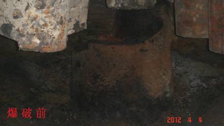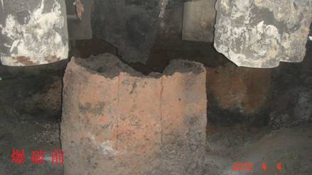 兗州中材建設有限公司云維項目部 實施石墨電極分解爆破 4月4日,應云維乙炔化工有限公司(業(yè)主)要求,我項目部對其廠區(qū)1#電石爐內(nèi)石墨電極成功實施分解爆破。 本次爆破點位于業(yè)主電石車間二層電石爐內(nèi),技術人員和安全員經(jīng)現(xiàn)場勘查發(fā)現(xiàn):石墨電極為直徑1.2m、高約1.5m的圓柱狀石墨體,從中心呈輻射狀均勻分布12塊約1cm厚鋼板。三個電極呈“品”字狀分布在一個直徑約7~8米的幾乎密閉的鋼制反應爐內(nèi)(有洞口)。爆前充分勘察了爆區(qū)周圍的實際情況,結合從網(wǎng)絡上搜集的對石墨電極的性能分析和以往的爆破經(jīng)驗,選用合適的爆破器材,擬定了幾種爆破方案。充分分析爆破方案的可行性后,選擇其中可行性較高的兩種方案進行了試爆,結合兩次試爆效果,經(jīng)調整爆破參數(shù)后,最終成功拆除。 本次爆破對僅隔約10米遠、正在生產(chǎn)的2#爐和庫房未產(chǎn)生任何影響。 這次爆破工作雖小,但我們本著謹慎、科學的態(tài)度對待。從爆破參數(shù)的選擇到安全警戒都認真小心,取得了預想的效果。 通過這次爆破,積累了對巖石以外材料的爆破經(jīng)驗,也增加了我項目部尤其是年輕人工作技能。也到了業(yè)主的認可。 孟永旺