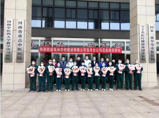 寶豐分公司經(jīng)理宋道明與中醫(yī)院急救科護士交談:“你們辛苦了,目前疫情形勢嚴峻,你們堅守崗位、迎難而上,為疫情防控做出了突出貢獻,我代表兗州中材寶豐分公司祝你們節(jié)日快樂。”