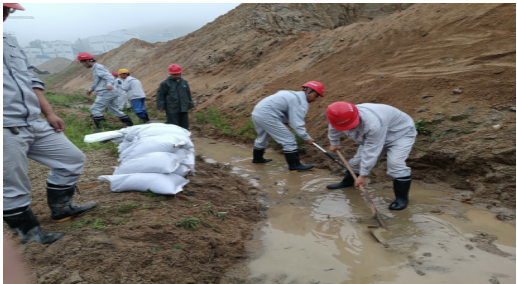 2022年6月20日早6點(diǎn),接應(yīng)急管理部門通知吉林地區(qū)預(yù)計(jì)未來24小時(shí)內(nèi)將有強(qiáng)降雨,舒蘭分公司項(xiàng)目經(jīng)理宋憲軍緊急通知各科室人員,組織對(duì)現(xiàn)場(chǎng)、生活區(qū)、炸藥庫(kù)、維修車間等地點(diǎn)進(jìn)行了防汛設(shè)施檢查。生活區(qū)東側(cè)邊坡被臨近公司時(shí)候后未進(jìn)行修整,加之連續(xù)降雨一整夜,東側(cè)邊坡垮塌,淹沒排水溝,造成堵塞。 接到通知后,生產(chǎn)科,立即調(diào)用裝載機(jī)趕到現(xiàn)場(chǎng),組織員工帶好防汛裝備趕到現(xiàn)場(chǎng)。現(xiàn)場(chǎng)負(fù)責(zé)人周浩講“裝載機(jī)立即清理邊坡上的塌陷料,生產(chǎn)科組織人員去上游疏通水道,安全科和設(shè)備科組織人員去邊坡上面挖掘水溝設(shè)置擋墻,避免水流二次破壞邊坡”,任務(wù)分配完畢后,各科室?guī)ьI(lǐng)人員緊鑼密鼓的組織起來。