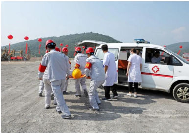 演練模擬在礦山現場1512平臺,由于雨后爆堆松軟,排險不及時,導致挖掘機進行挖裝作業(yè)時發(fā)生坍塌事故,土石坍塌砸到駕駛室,車門無法正常開啟,駕駛員被困駕駛室并且傷情不明,現場管理人員向應急指揮部報告后,立即啟動應急預案,組織人員開展傷員救助。 演練開始前兗州中材呂梁分公司項目經理王建立發(fā)表講話,并介紹了項目情況。王經理表示,呂梁分公司成立十年來一直秉承一個央企的責任,履行企業(yè)的安全管理職責,展現國有大型企業(yè)的擔當。安全工作從嚴要求,做好企業(yè)安全形象。提升服務高度、精度和寬度,為礦山行業(yè)的健康發(fā)展貢獻力量。