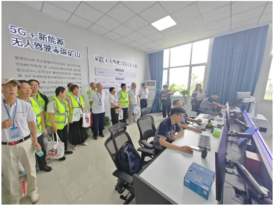 啟動儀式后,全體人員走進兗州中材鄒城分公司,親身感受兗州中材近年來的發(fā)展變化。在講解員的帶領(lǐng)下,全體人員依次參觀辦公樓無人駕駛云控中心、骨料生產(chǎn)線中控室、礦山180觀景平臺觀摩無人駕駛運輸,近距離了解兗州中材在生態(tài)環(huán)保、綠色發(fā)展、礦山開采、智能制造等方面取得的成績。