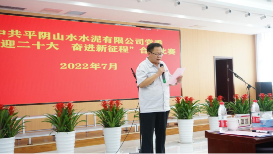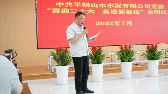 今年是偉大的中國(guó)共產(chǎn)黨建黨101周年華誕,為慶祝黨的百年華誕中共平陰山水水泥有限公司黨委組織開(kāi)展“喜迎二十大 奮斗新征程”合唱比賽。 7月8日下午15:30分,隨著歡快的《迎賓進(jìn)行曲》的響起,參加合唱比賽的12位評(píng)委和5支代表隊(duì)依次進(jìn)場(chǎng)。 本次比賽共分為:行政銷(xiāo)售支部代表隊(duì)、塑編支部代表隊(duì)、生產(chǎn)一支部代表隊(duì)、生產(chǎn)二支部代表隊(duì)和兗州中材平陰分公司與礦管辦代表隊(duì)。 15:50分活動(dòng)正式開(kāi)始,平陰山水黨委書(shū)記侯福存發(fā)表主旨講話:今年是建黨101周年。100多年來(lái),我黨團(tuán)結(jié)帶領(lǐng)全國(guó)各族人民自強(qiáng)不息、拼搏進(jìn)取,戰(zhàn)勝艱難險(xiǎn)阻,取得了舉世矚目的輝煌成就,帶領(lǐng)我們昂首闊步邁向偉大復(fù)興。今天,我們隆重集會(huì),用歌聲頌揚(yáng)黨的光輝歷史,緬懷黨的豐功偉績(jī),向黨的101歲華誕獻(xiàn)禮,向黨的二十大獻(xiàn)禮。公司黨委舉辦本次合唱大賽,既是豐富黨建工作形式、促進(jìn)黨建和公司中心工作高度融合的重要舉措,也希望通過(guò)比賽,進(jìn)一步增強(qiáng)黨群、干群凝聚力和向心力,激勵(lì)全體干部職工堅(jiān)定信念、迎難而上,在“百日趕超”勞動(dòng)競(jìng)賽中繼續(xù)立足崗位、攻堅(jiān)克難,全力沖刺“大趕超”任務(wù)目標(biāo),為公司項(xiàng)目建設(shè)和高質(zhì)量發(fā)展貢獻(xiàn)更大力量。 最后,侯書(shū)記宣布合唱比賽開(kāi)始。