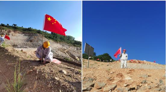 唱完國歌,員工們在項(xiàng)目經(jīng)理及各黨員的帶領(lǐng)下,每人領(lǐng)取了一面國旗和旗桿,興致勃勃的向礦區(qū)走去。